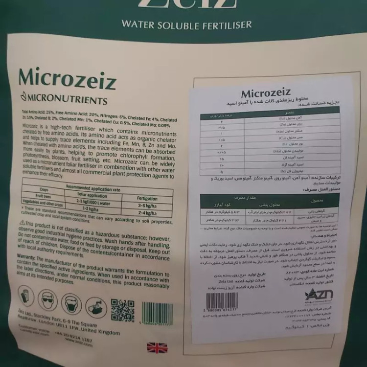 کود ریز مغذی کلات شده با امینو اسید زایز