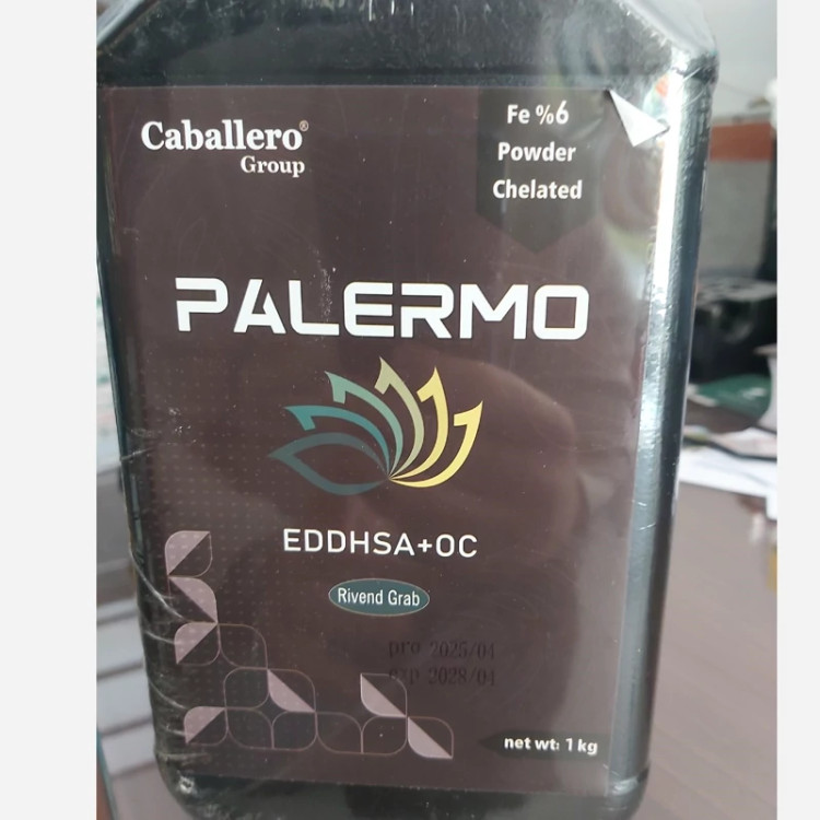 متاسفانه این کالا در حال حاضر موجود نیست. میتوانید از طریق لیست بالای صفحه، از محصولات مشابه این کالا دیدن نمایید.کود اهن کلاته پالرمو محصولی از گروه کابالرو دارای 6 درصد نیتروژن کل، 6 درصد آهن محلول، 1.5 درصد آهن کلاته شده با EDDHSA و 4.5 درصد اهن کلاته شده با سایر ایزومرهای کلات کننده، آمونیاک اتیلن دی آمین سنتز شده، بسیار موثر در سبزینگی گیاه و انجام کامل فتوسنتز در گیاهان می باشد.